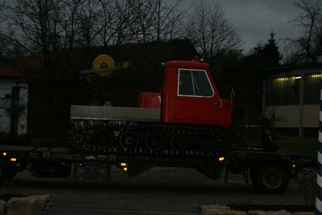 Ankunft der Pistenraupe in Wasentegernbach am 23.12.2011.