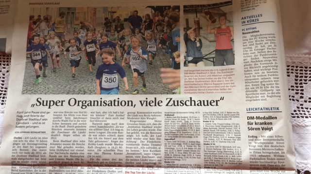 15. Dorfner Stadtlauf am Sonntag, den 09.Juli 2017